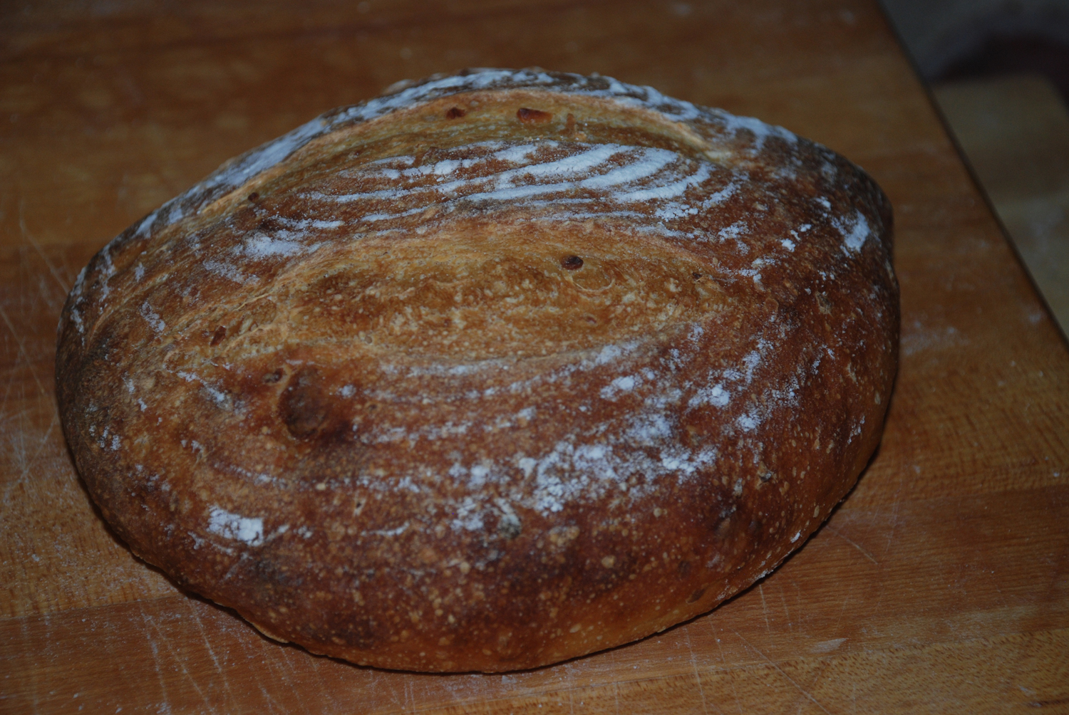 I created this recipe using the basic San Francisco Sour Dough recipe from Peter Reinhart’s “Artisan Bread Every Day”. If you don’t have this book I highly recommend it. The basic theory behind this book is that you can mix the dough in one day, let it sit in the fridge for 3-4 days while it develops its flavor during a nice long and cold fermentation and bake at your leisure. You have the option to use a small amount of yeast to lessen the preparation time, or no yeast relying on your starter.
