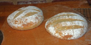 When ready to bake the bread, shape the dough as desired being careful not to handle the dough too roughly so you don’t de-gas it. Place it in your bowl, banneton or shape into baguettes. (If you did not use yeast, let it sit in your bowl for 2 hours before shaping).