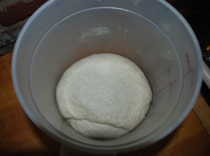 After another 10 minutes do another stretch and fold and put into a lightly oiled bowl that has enough room so the dough can double overnight.