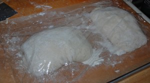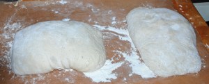 Next, cut the dough into either 3 small ciabatta or 2 larger size loaves. I opted to go with the 2 larger size but probably would have been better making 3 smaller ones.