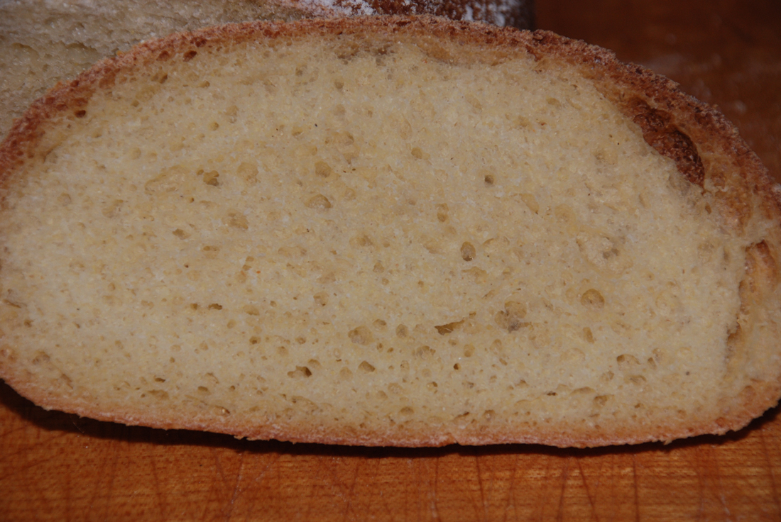 I decided to try adapting a recipe I found on the www.thefreshloaf.com  from Steve B. at www.breadcetera.com for a Corn Bread made with a poolish starter.  I used my sourdough starter in place of the poolish and also eliminated the yeast from the recipe.  I used my usual baking method borrowed from Peter Reinhart’s Artisan Breads Everyday and the results were excellent if I do say so myself!