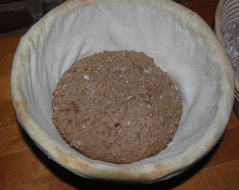 The next day I let the dough sit out at room temperature for 1.5 hours. After 1.5 hours I formed it into loaves and put them in floured bannetons and let them rise covered for 2 hours.