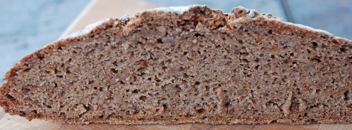 I had to bake this bread for almost 50 minutes since it was so moist and the final dough came out with an excellent crust and moist crumb but a little denser than I would have preferred. It is an excellent bread for some sharp cheese and/or a nice grilled cheese sandwich.