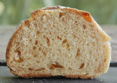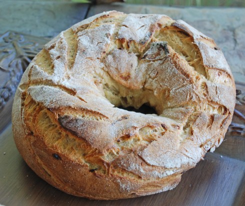 This is the second bread I made for Rosh Hashana to bring to my Cousin’s house for dinner. The other loaf was hearty multi-grain with Farro and Toasted Lager so I wanted to make something a little lighter for this loaf. I used some Durum Semolina, Italian Style 00 flour, whole grain Spelt flour and roasted onions and greek yogurt. I wanted to use the yogurt to try to make the crumb more delicate along with the 00 Italian style flour.