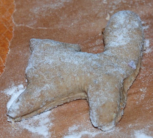 I saved a small piece of dough and used a cat shaped cookie cutter to create the Mookie decoration.