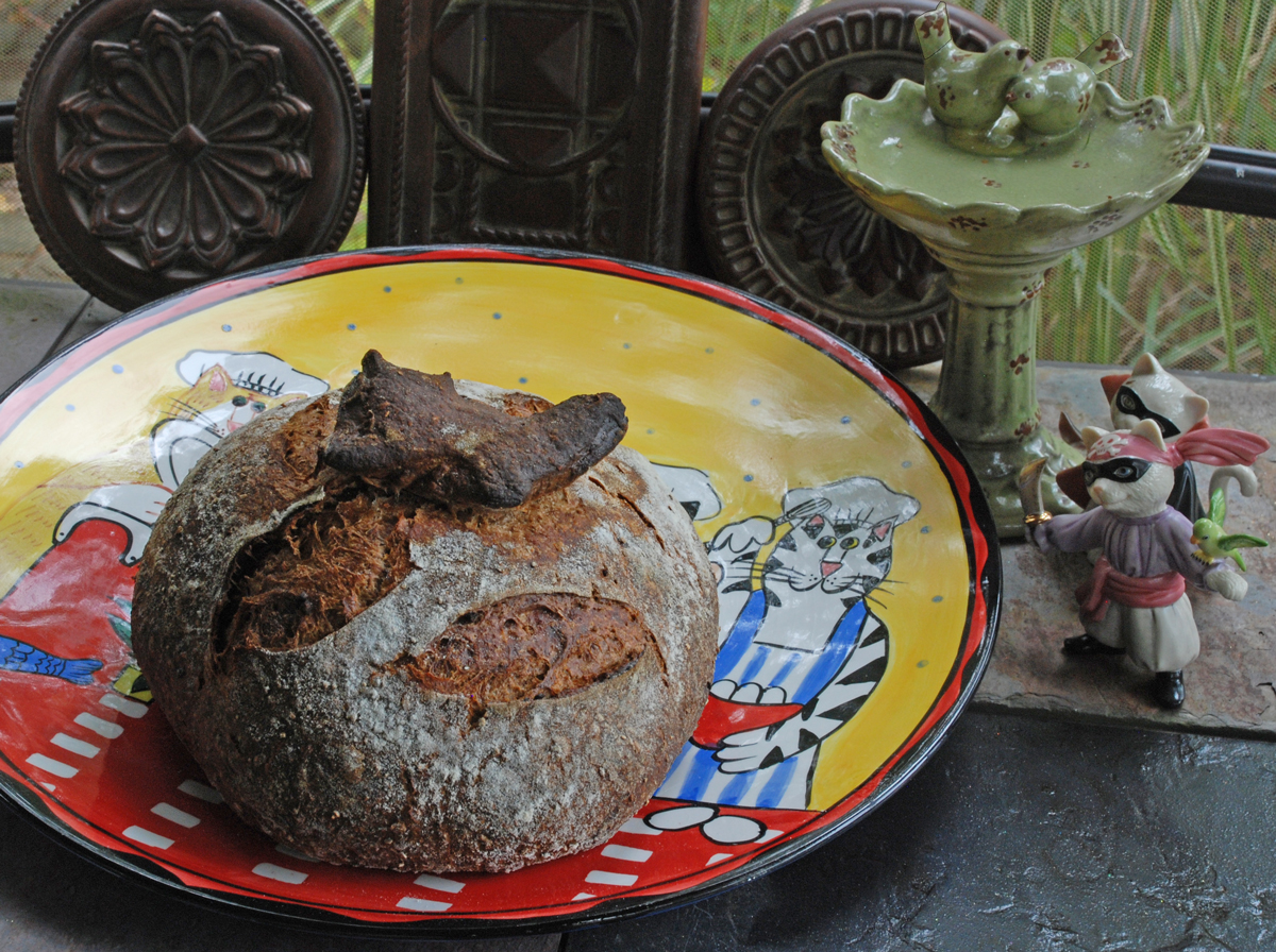 Mookie did insist on having the bread have his likeness on it, so since I don’t have a cat mold I used a cookie cutter to make a bread cookie to adorn the top of the bread.  I am not sure if he approves of how it looks since it doesn’t have any white in it, but he said he will overlook that if it tastes good.