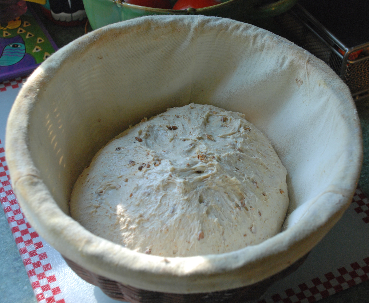 When read to bake, score the loaf as desired and prepare your oven for baking with steam.