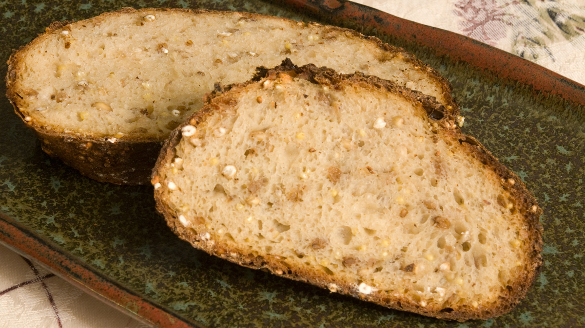 I made a soaker with a bunch of different grains and let it sit for 24 hours in a bowl with hot water to soften it up. The grains will soak up about 75% of the water which will end up making your dough very moist.