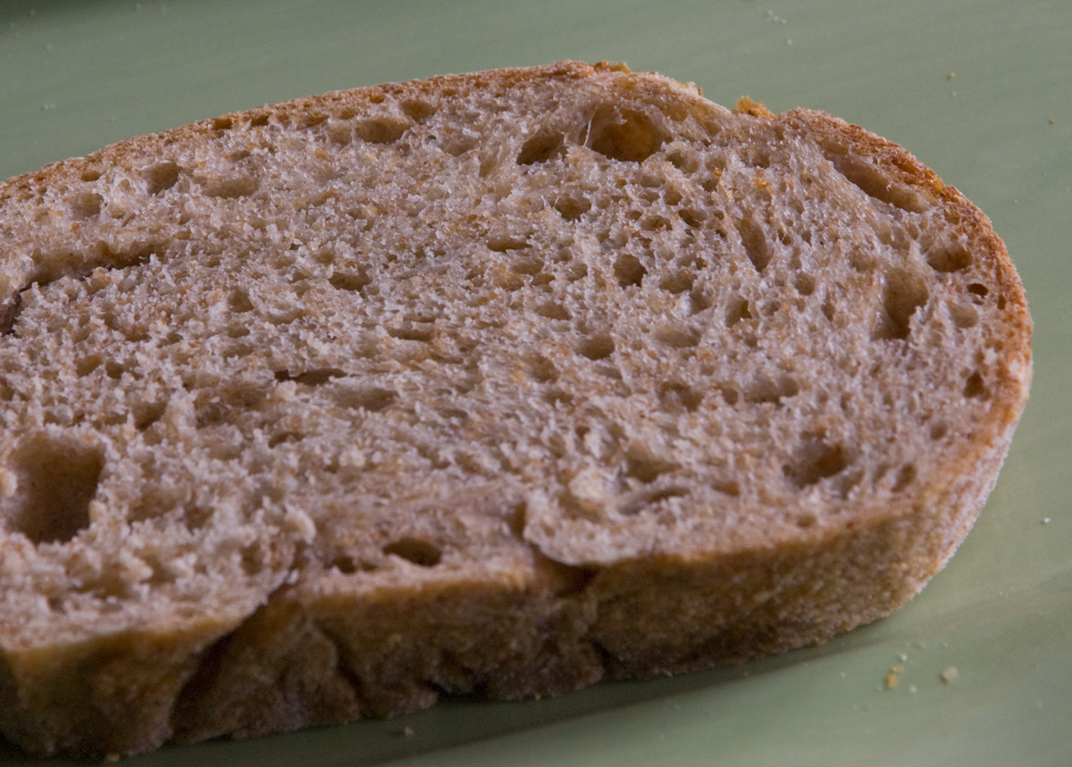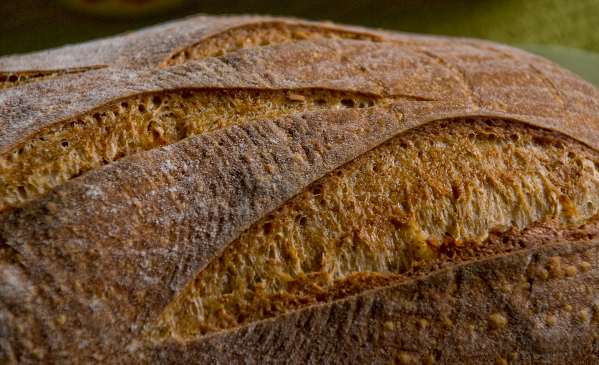 closeup1   Every once in a while I feel the need to make a more simple bread; one that will make a great sandwich.  With that in mind I decided to make a version of a Pain Au Levain using some French style flour from KAF, whole wheat and some dark rye flour and toasted wheat germ in the final dough.