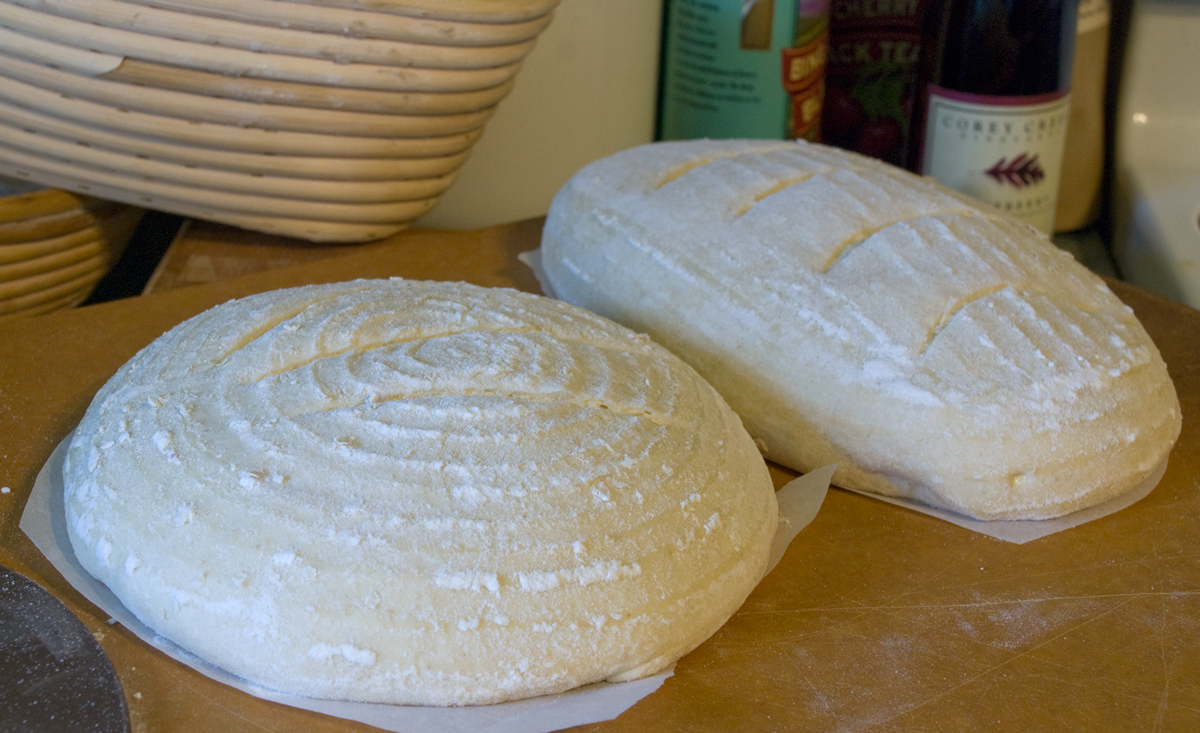 Right before you are ready to put them in the oven, score as desired and then add 1 cup of boiling water to your steam pan or follow your own steam procedure.Scored