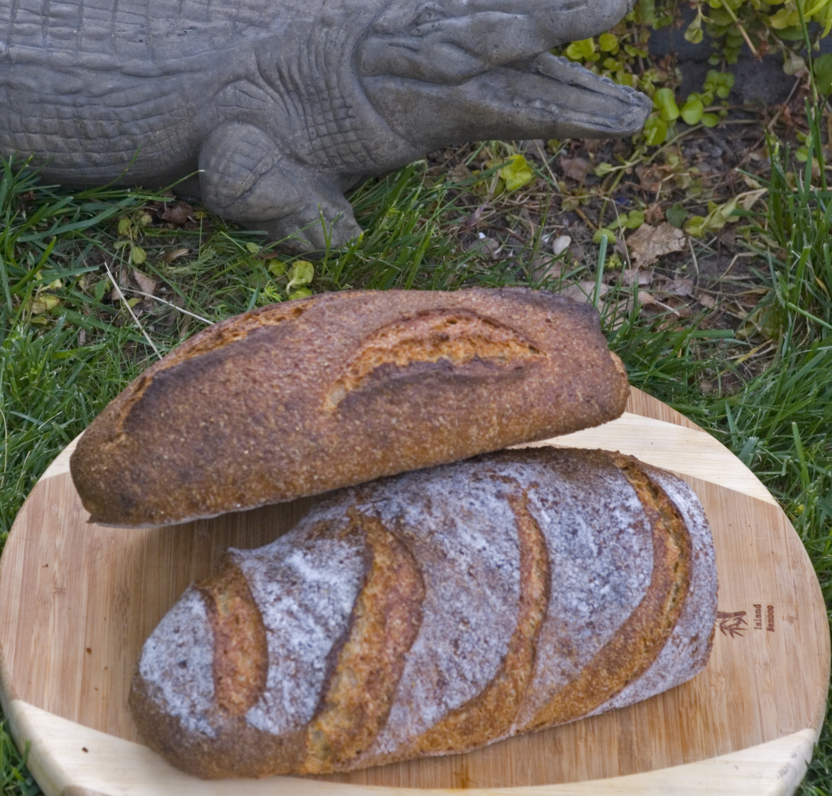You will notice a big hunk of one of the breads in the final photo has gone missing. I would say the alligator ate it, or one of my apprentices, but alas it was my wife who upon returning from shopping thought it was a good idea to lop off a nice chunk before I had a chance to photograph it. At least she seemed to like it, or it could have been because it was the first thing she had eaten all day. I guess I will never know…..