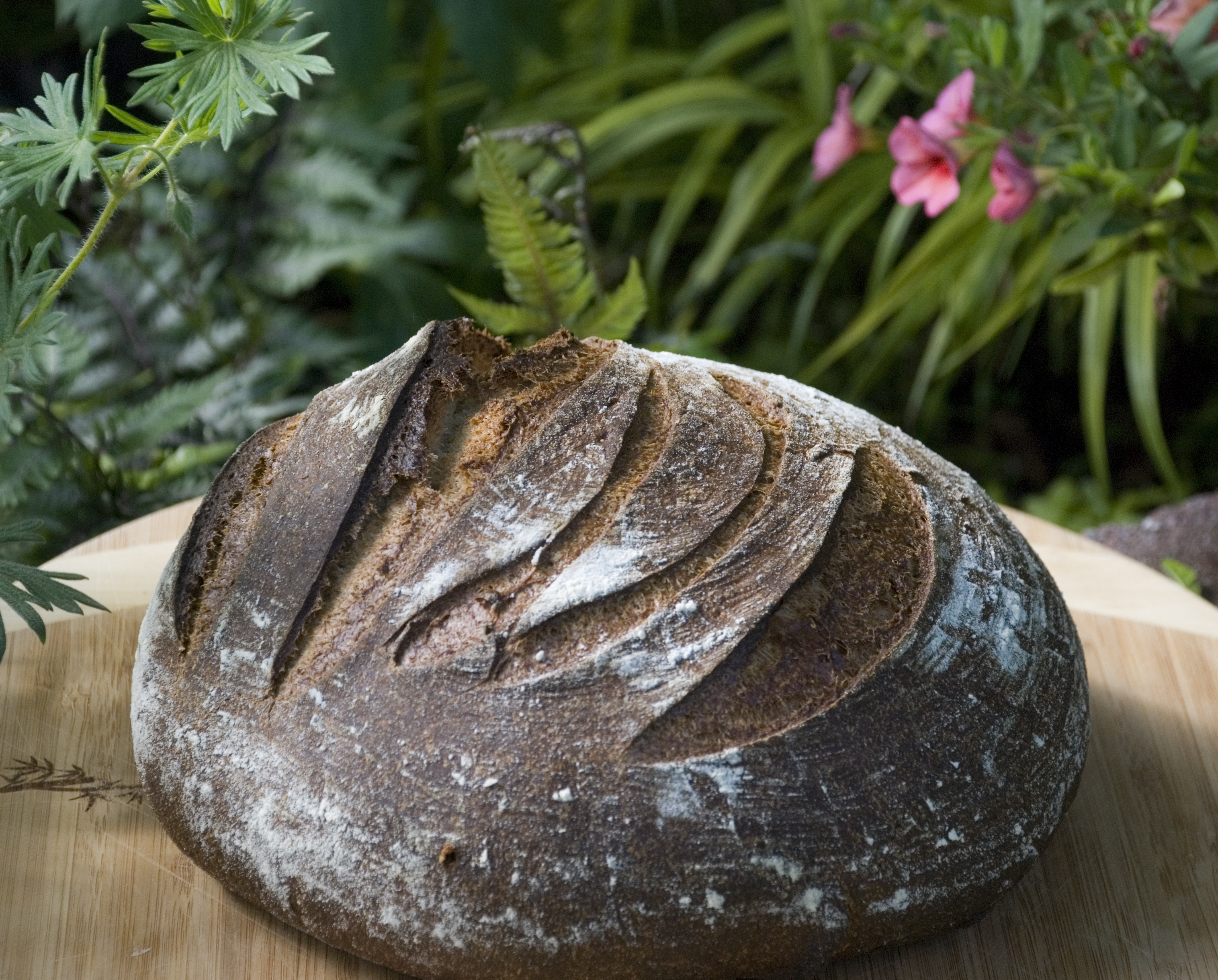 After 1 minute lower the temperature to 450 degrees(if making 1 large miche style loaf, lower to 425 F).  Bake for 35-50 minutes until the crust is nice and brown and the internal temperature of the bread is 205 degrees.