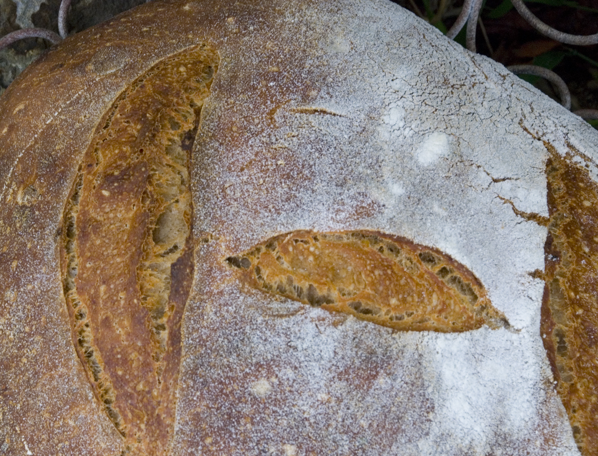 While the hydration level of this dough came in at only 70% I will tell you with this combination of flours it was a very wet dough.  I probably should have done a few more stretch and folds in the rising bucket but in the end while a little more flat than preferred it had good oven spring and tastes great.