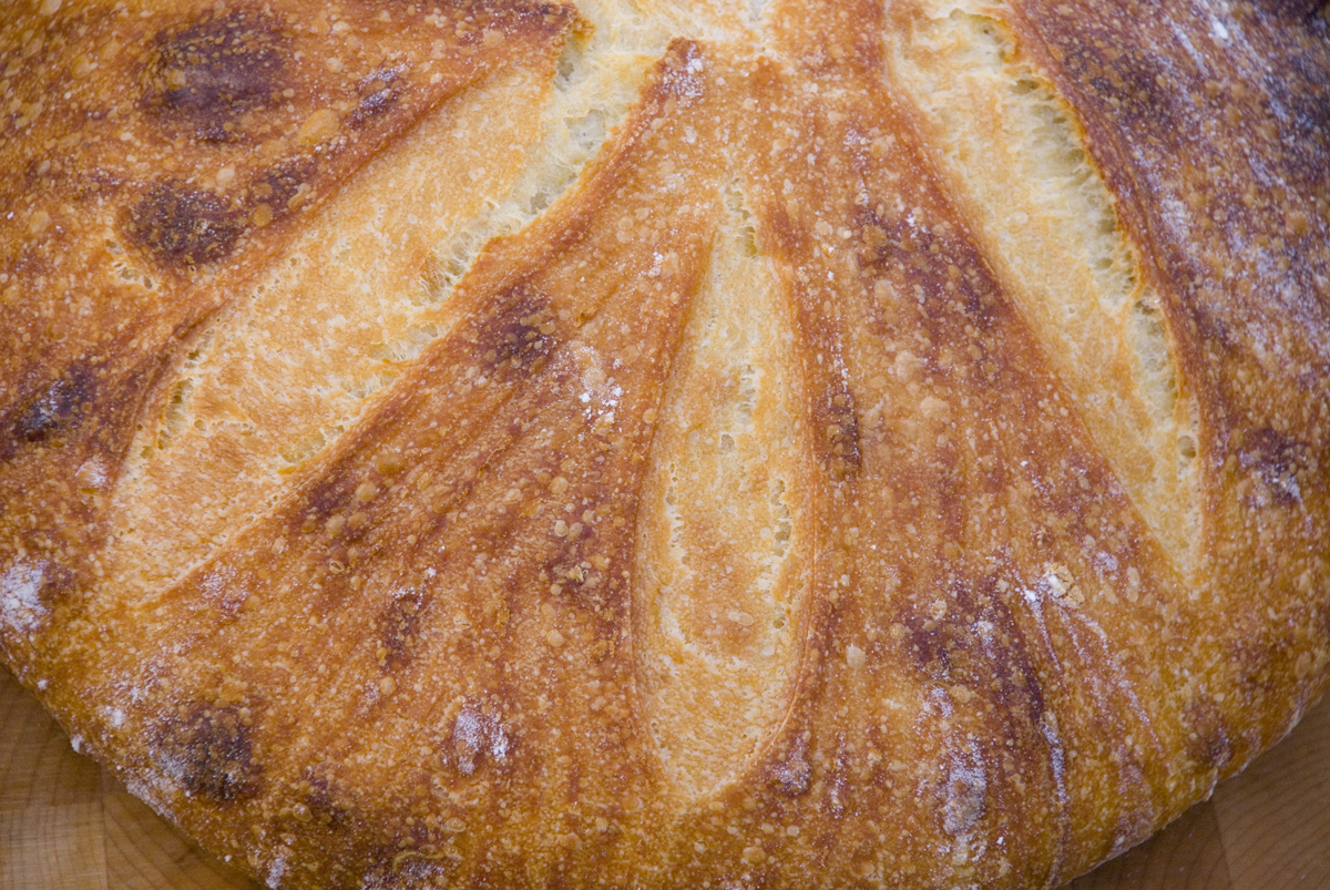 Set your oven for 525 degrees F. at least 45 minutes before ready to bake. When ready to bake place the loaves into your oven on your oven-stone with steam and let it bake for 10 minutes and then lower the temperature to 450 degrees. When the loaf is golden brown and reached an internal temperature of 210 degrees F. you can remove it from the oven.