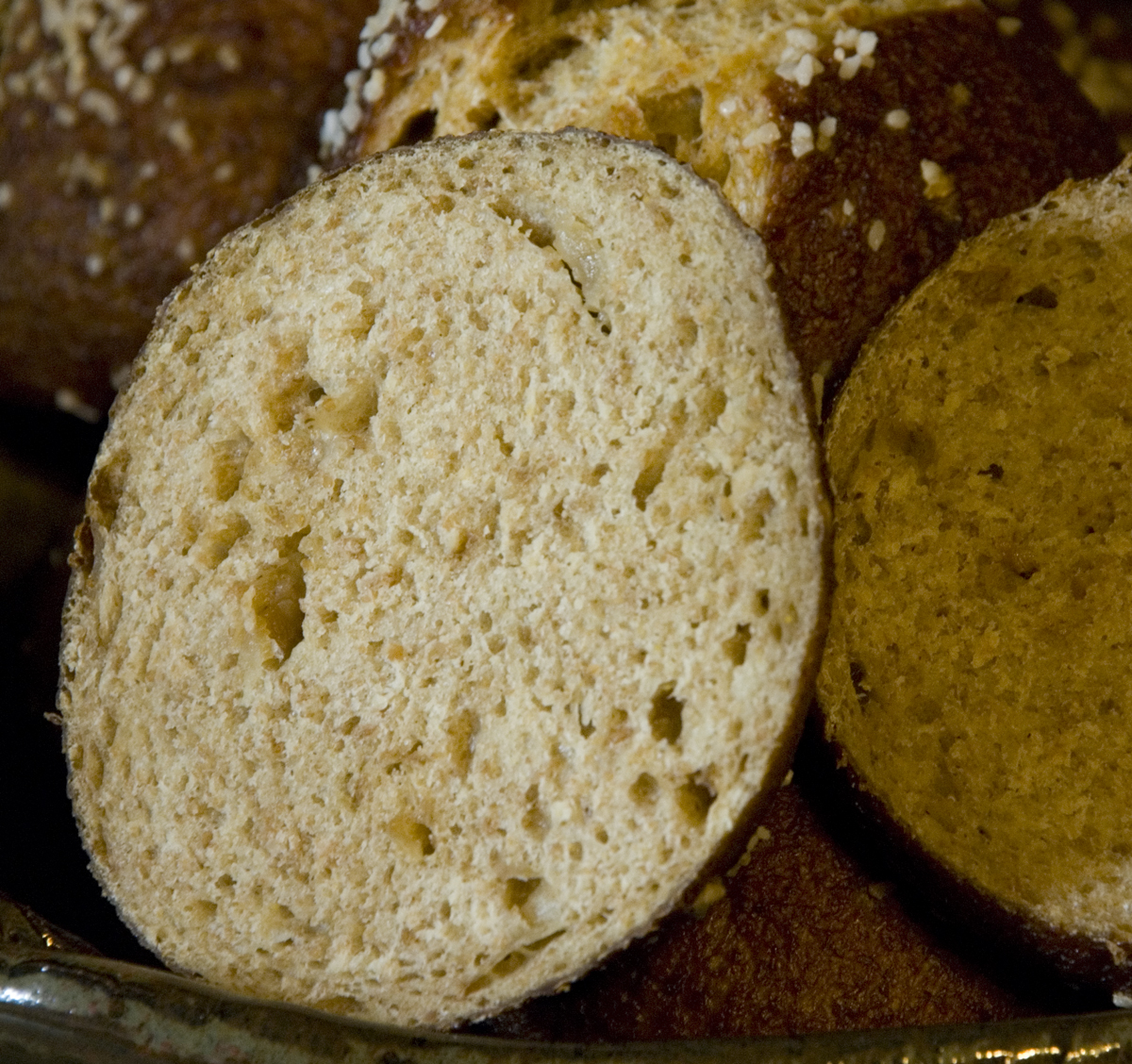 Pre-heat your oven to 400 degrees. When the rolls are proofed sufficiently, prepare to dip them for about 15 seconds in the lye bath upside down. Let them drain on a bakers rack over a cookie tray covered with a towel or parchment paper. After draining for a minute you can transfer them to a cookie/baking sheet that has been sprayed with cooking spray. You want to use a stainless steel cooking sheet as aluminum may react with the lye and peel. Note: do not ever use parchment paper as the rolls will get stuck to the bottom. I know this from experience and I had to cut off the bottoms of half the rolls I made.