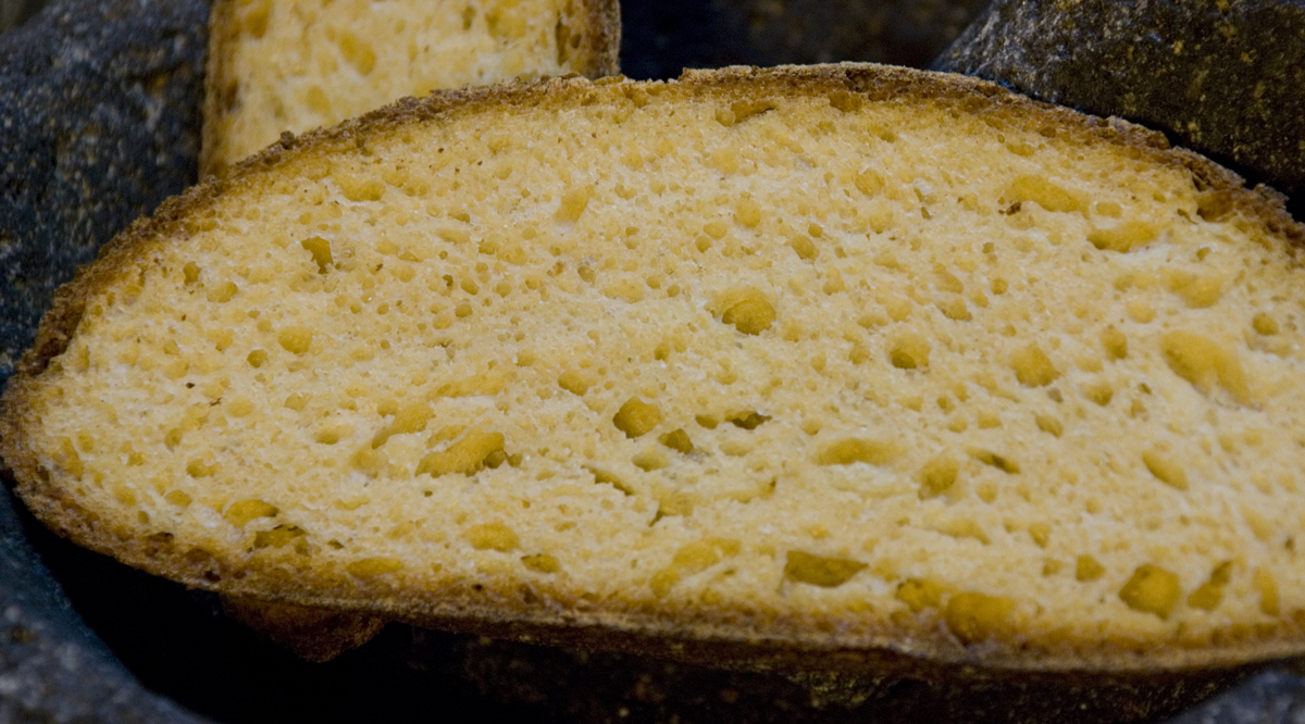 Take the bread out of the oven when done and let it cool on a bakers rack before for at least 2 hours before eating.