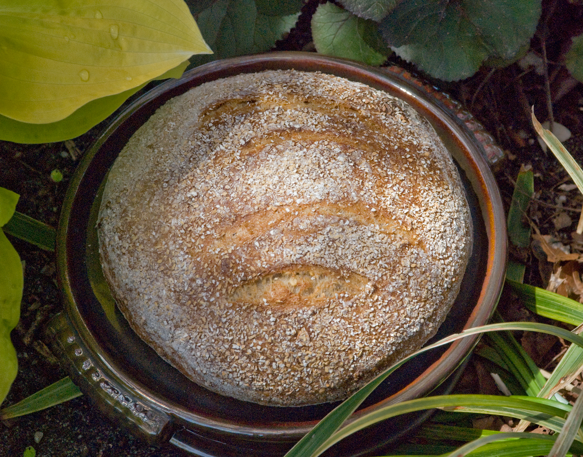 I followed his directions mostly with a few exceptions.  I used my Bosch Universal mixer to mix up the dough for the most part except I did mix the salt in by hand.  I also held back around 25-30 grams of water in the final dough as I felt it was already more than hydrated enough which I believe was the right decision.  I used freshly ground whole wheat in the starter and in the main dough along with KAF bread flour.  I omitted the wheat germ like he did but next time I would definitely add it for some extra flavor.  I also baked this on my stone rather than in a covered dutch oven.
