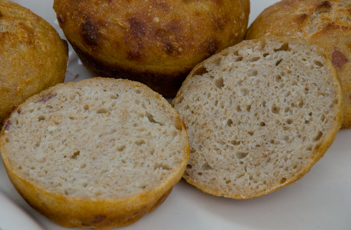 I decided to use an extra large muffin pan to place the poorly shaped rolls and it worked out great. These are some tasty rolls and were perfect for the turkey burgers with caramelized onions and fresh Parmesan cheese I used them for, one night for dinner.