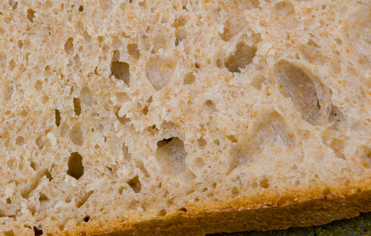 The dough had great oven rise and I was pretty happy with the final result. I do have to say it was not as sour as the original version and I still had some irregular holes which is not something I normally get with any of my bread.