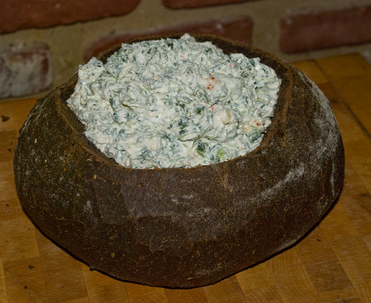I decided to adapt a few recipes I found in some of my baking books and came up with a bread similar to what you would find in a bakery but without the rye starter typically used. The final bread came out perfect for the dip and I made a second one for sandwiches.