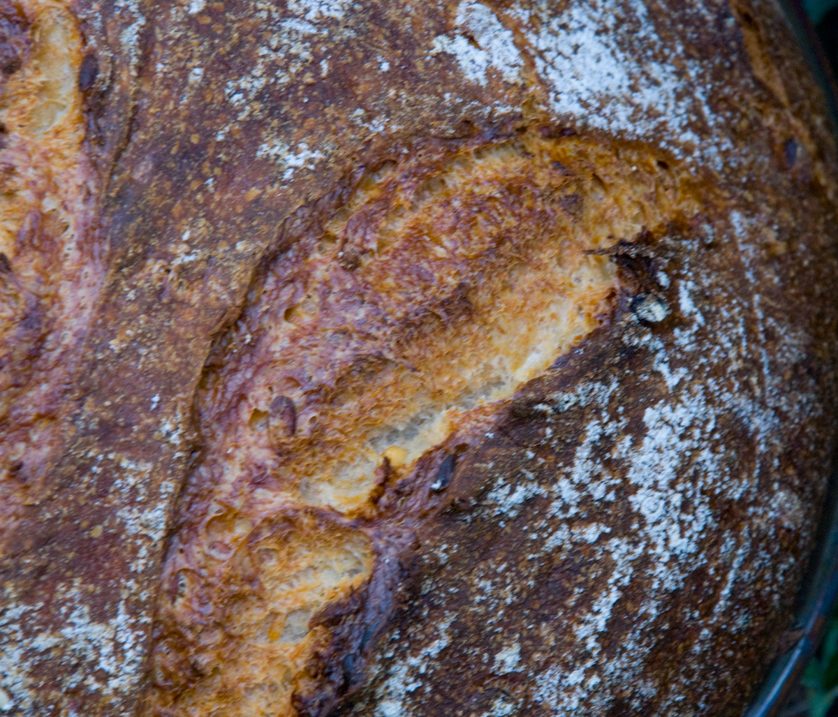 The end result was still a tasty loaf with a nice moderately open moist crumb. It made great grilled bread and really was an excellent loaf. If I had added more water it would have been a little more open and moist but all in all it was a success.