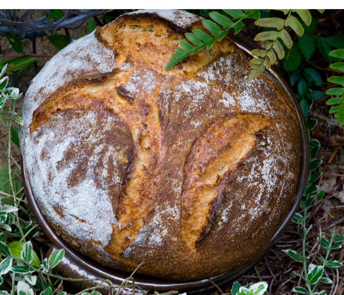 After 5 minute lower the temperature to 450 degrees. Bake for 35-50 minutes until the crust is nice and brown and the internal temperature of the bread is 205 degrees.