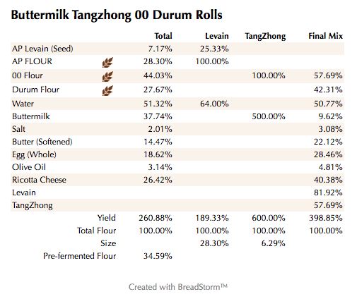 Buttermilk Tangzhong 00 Durum Rolls (%)