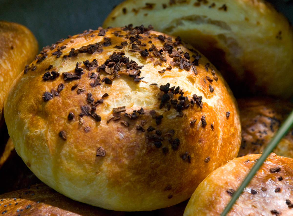 Right before you are ready to put them in the oven, using a simple egg wash brush each roll and sprinkle on your topping of choice.   Next add 1 cup of boiling water to your steam pan or follow your own steam procedure.