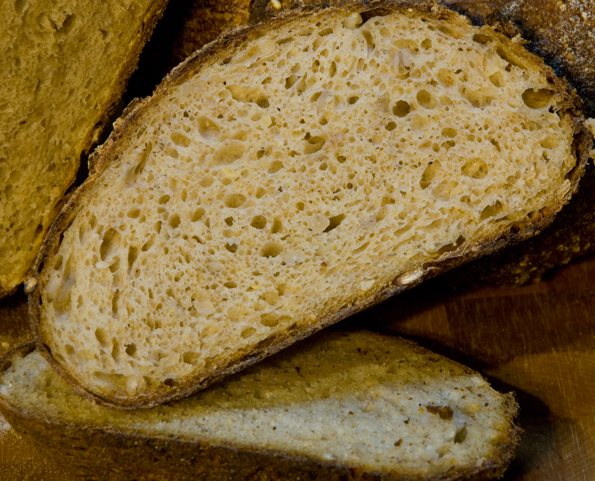 The final bread was excellent with a nice moist and open crumb which is expected from porridge breads. As I said before this one did come out a lot more sour than usual but it makes excellent grilled bread and toast and I almost wish I had kept both loaves instead of giving one away :).