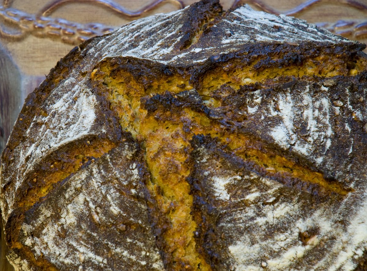 Take the bread out of the oven when done and let it cool on a bakers rack before for at least 2 hours before eating.