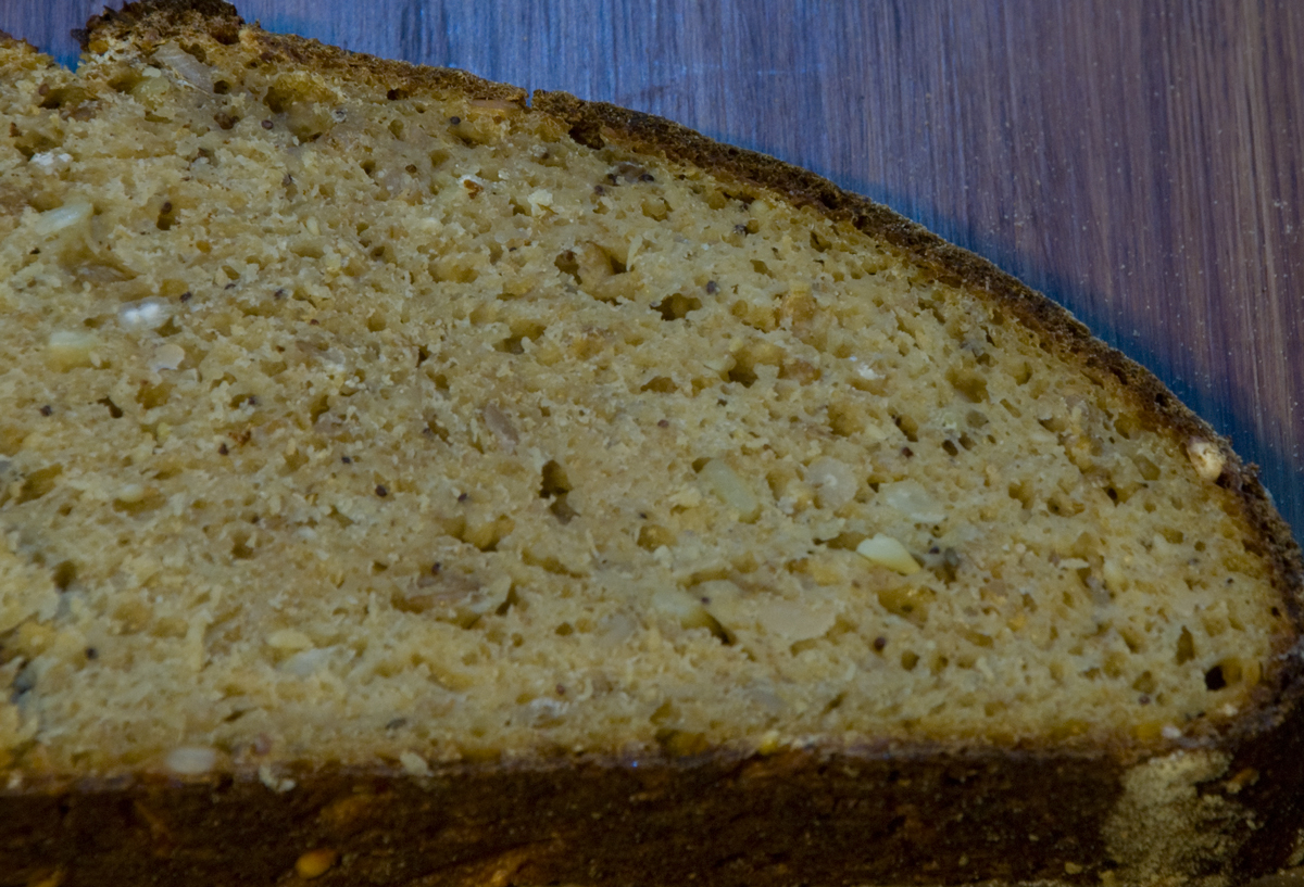 I used my usual procedure to make a porridge bread but decided to use buttermilk instead of milk or water in the porridge. I also used some freshly ground durum flour, sprouted durum and some Harvest Grain Mix from KAF which includes whole oat berries, millet, rye flakes, and wheat flakes and four seeds (flax, poppy, sesame, and sunflower). The end result is a tangy, hearty loaf with a wonderful moist crumb.