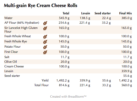 These rolls are healthy and tasty at the same time. I used a combination of milled flour and KAF flour with some cream cheese, and olive oil for softness along with my old faithful AP starter.