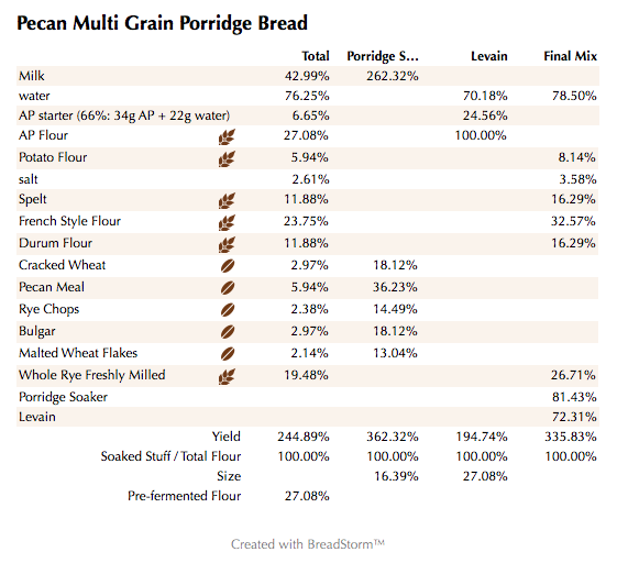 I love pecans and remembered the other day that I had some pecan meal left over just yelling at me to use it. What better use than in a new version of a porridge bread.