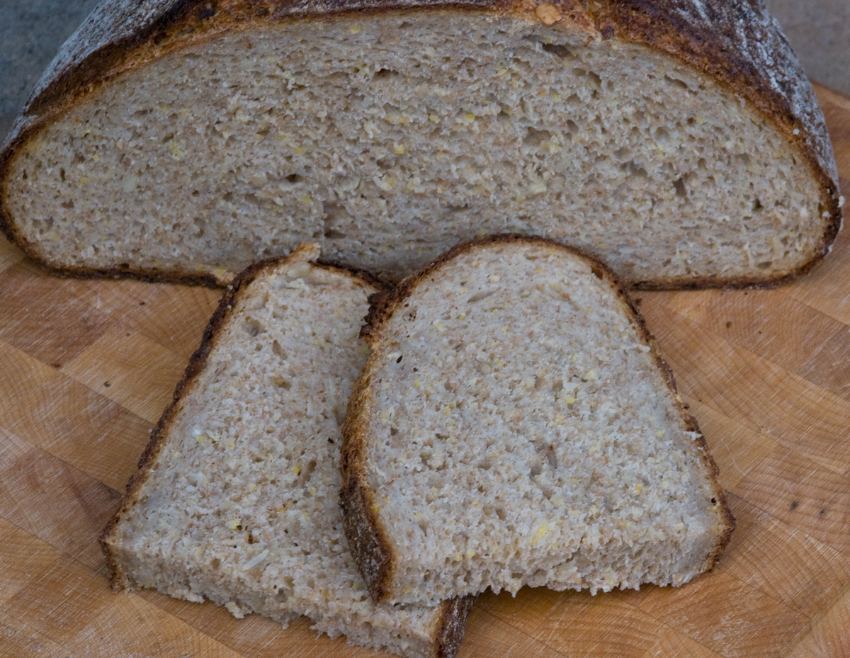 The crumb was nice and moist as are most porridge style breads and fairly open considering all of the whole grain flours used in this one.