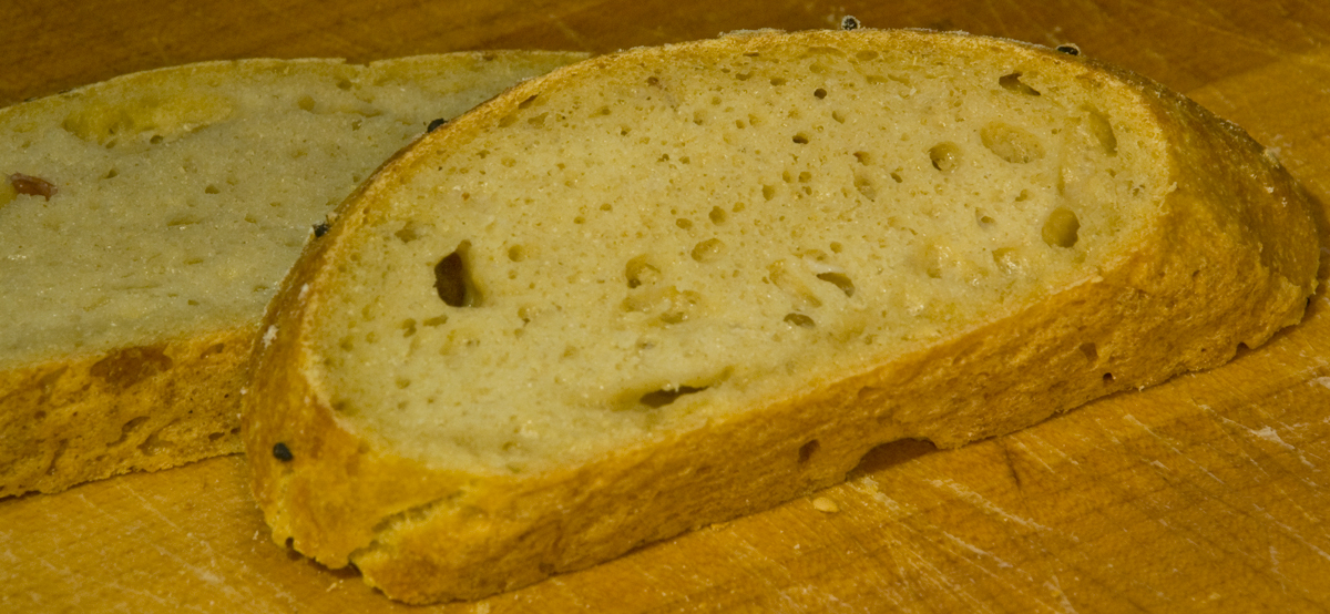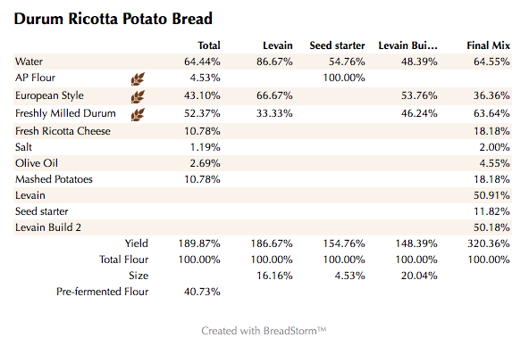 To make this one interesting I added some fresh ricotta and mashed potatoes. The end result was a nice open soft crumb but for some reason this one ended up very sour. It does make great toast and grilled bread for sure.