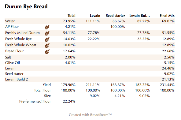 I incorporated some rye and durum into the two build starter and added some bread flour for some added strength.