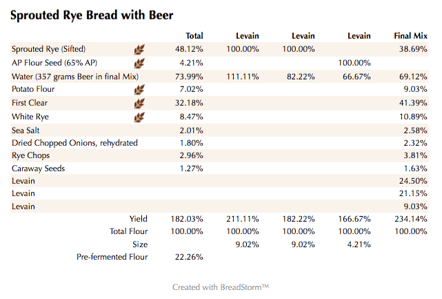 Rehydrate the onions in the water/beer mixture for a minute or two. Next, mix the flours, rye chops, caraway seeds and water/onion mixture together in your mixer or by hand until it just starts to come together, maybe about 1 minute. Let it rest in your work bowl covered for 20-30 minutes. Next add the salt, starter (cut into about 7-8 pieces), and mix on low for 6 minutes. Remove the dough from your bowl and place it in a lightly oiled bowl or work surface and do several stretch and folds. Let it rest covered for 10-15 minutes and then do another stretch and fold. Let it rest another 10-15 minutes and do one additional stretch and fold. After a total of 2 hours place your covered bowl in the refrigerator and let it rest for 12 to 24 hours. (If you have a proofer you can set it to 80 degrees and follow above steps but you should be finished in 1 hour to 1.5 hours).
