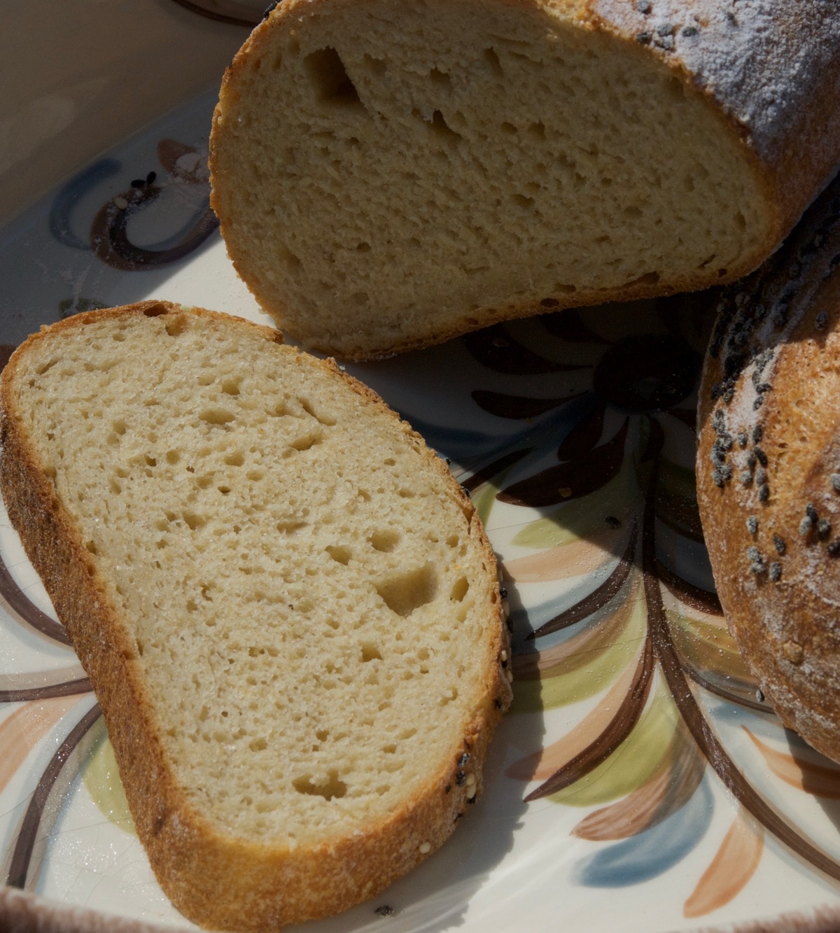 I was in the mood for a nice soft flavorful bread, so since I had some fresh milled Kamut flour ready to go, I mixed it with a good amount ricotta cheese, olive oil and some Artisan style flour from KAF. The end result was a dough that was soft as silk and ended up with a wonderful soft and flavorful crumb, perfect for sandwiches, toast and grilled bread.