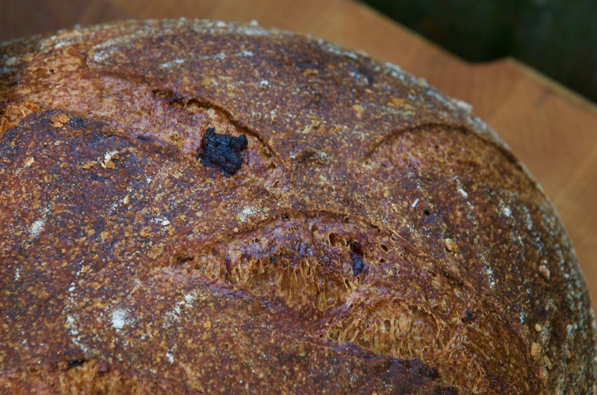 After 1 minute lower the temperature to 500 degrees and after another 3 minutes lower it to 450 degrees.  Bake for 25-35 minutes until the crust is nice and brown and the internal temperature of the bread is 210 degrees.