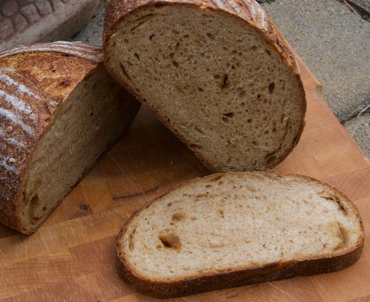 I used a combination of medium rye, fresh whole wheat and French style flour from KAF.