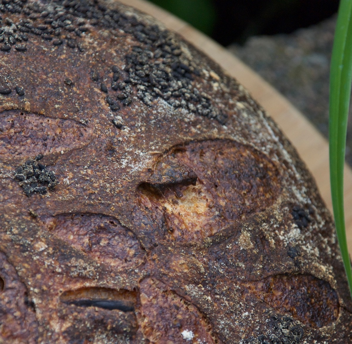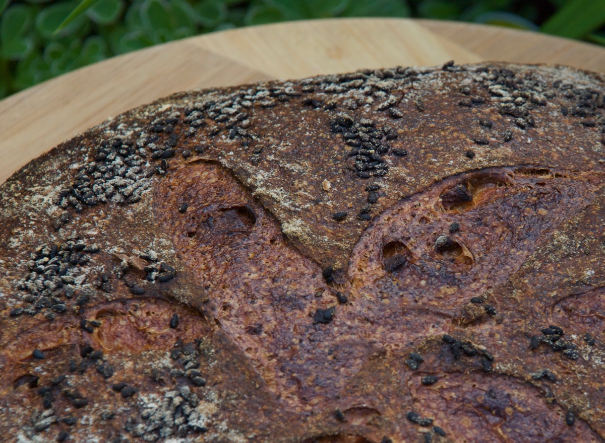 This was an interesting experimental bread. I decided to use a potato cut up into little pieces along with the polenta in the actual porridge. I wanted to have actual pieces of potato in the bread and it worked like a charm. It was especially interesting on the crust of the bread where the potatoes that were sticking out got nice and crisp like potato sticks.