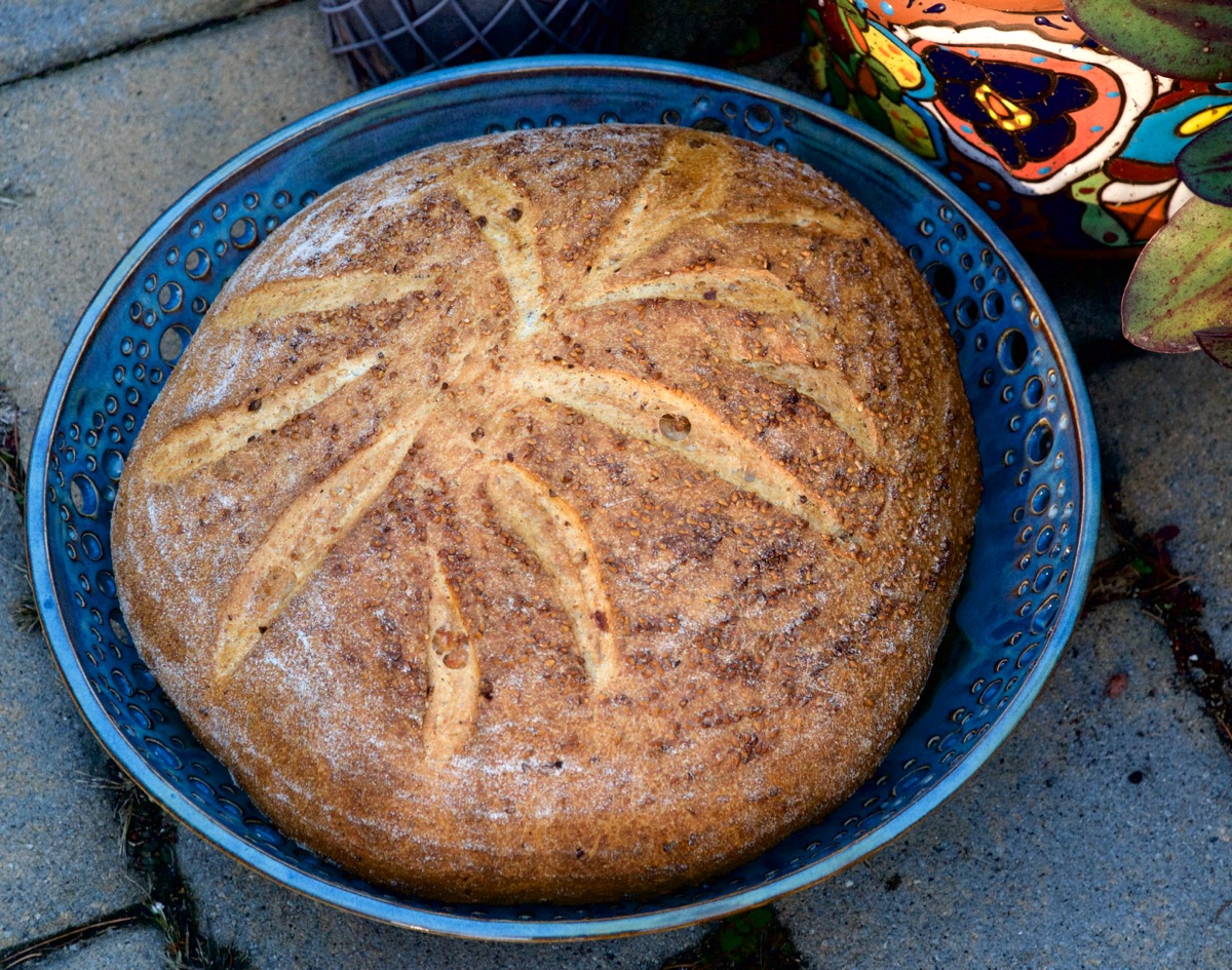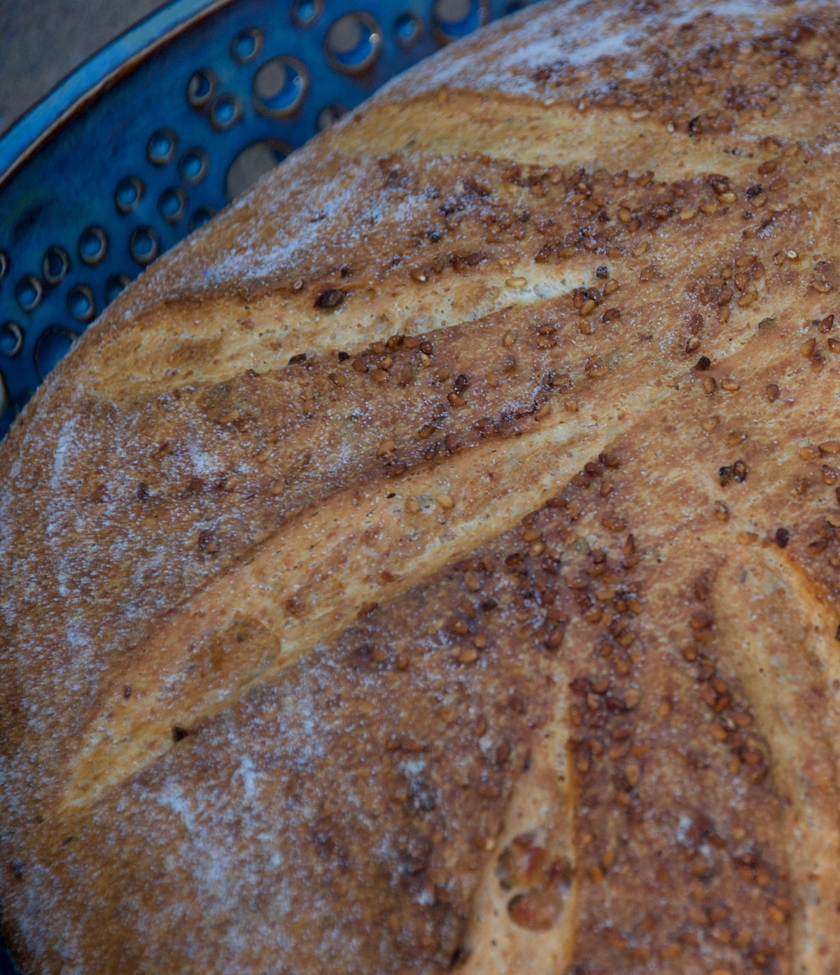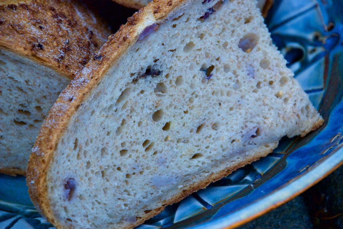 You can see the pretty purple bits of potato sticking out of the crumb and the nice nutty flavors of the spelt and durum really make this one worth baking again.