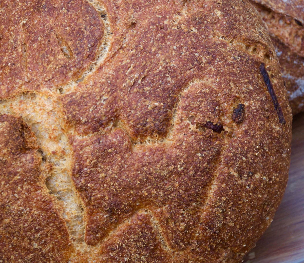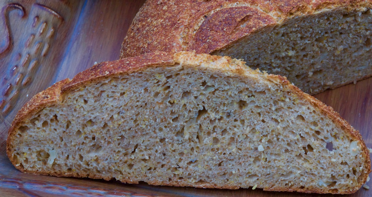 The crumb was moist and open and bursting with flavor. The soaker added a nice nutty flavor and the onions were melt in your mouth delicious along with the odd chunk of potato. This one is worth making again.
