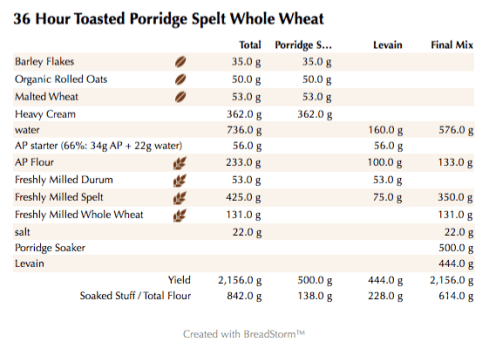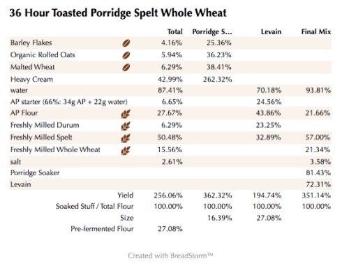 I have made several breads with this long autolyse technique in the past and I’m always happy with the well developed flavor and open crumb it produces.  By adding the porridge element and upping the hydration it really created a wonderfully moist and open crumb.  The toasted grains really came through in the flavor department as well.  This is definitely one worth baking again.