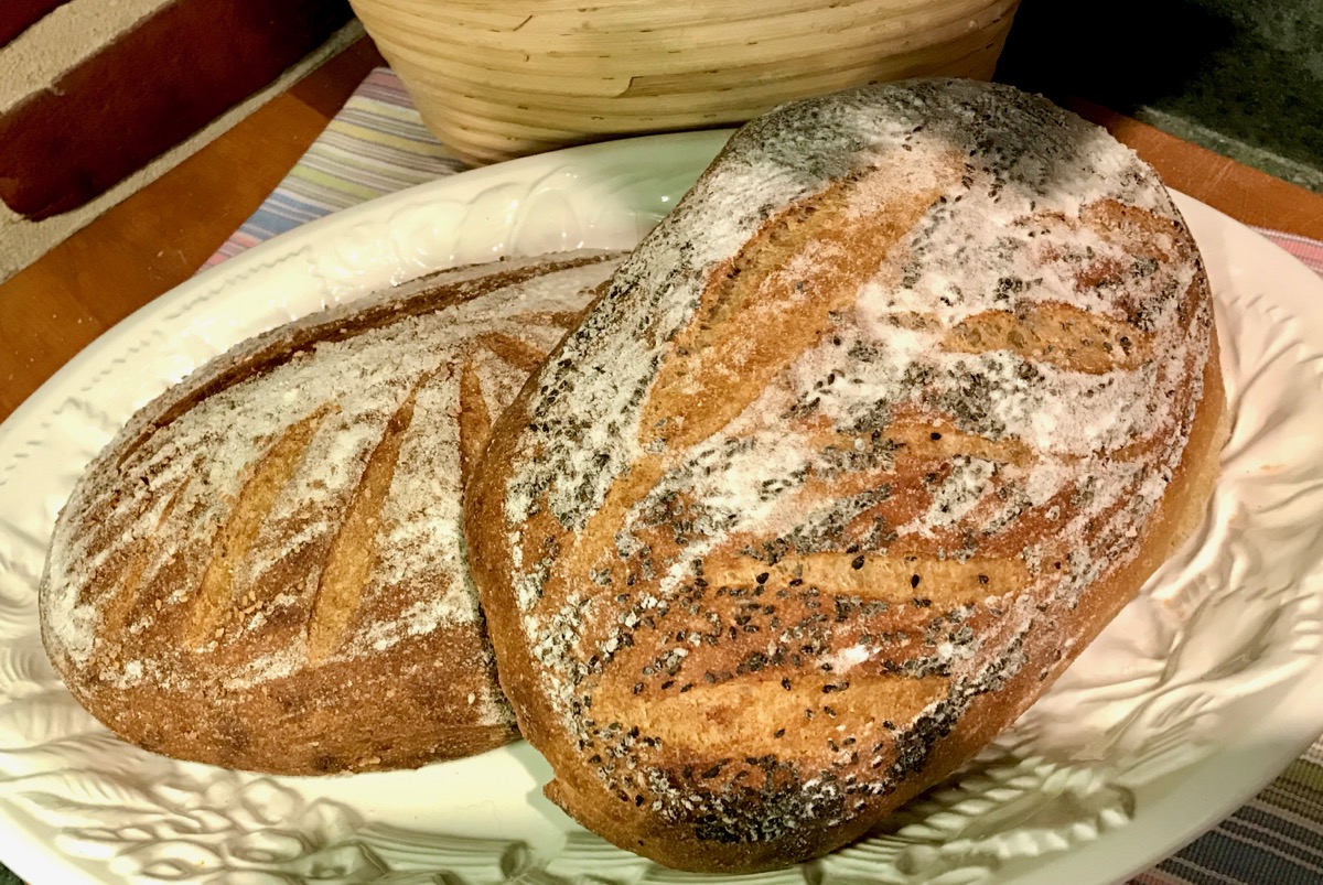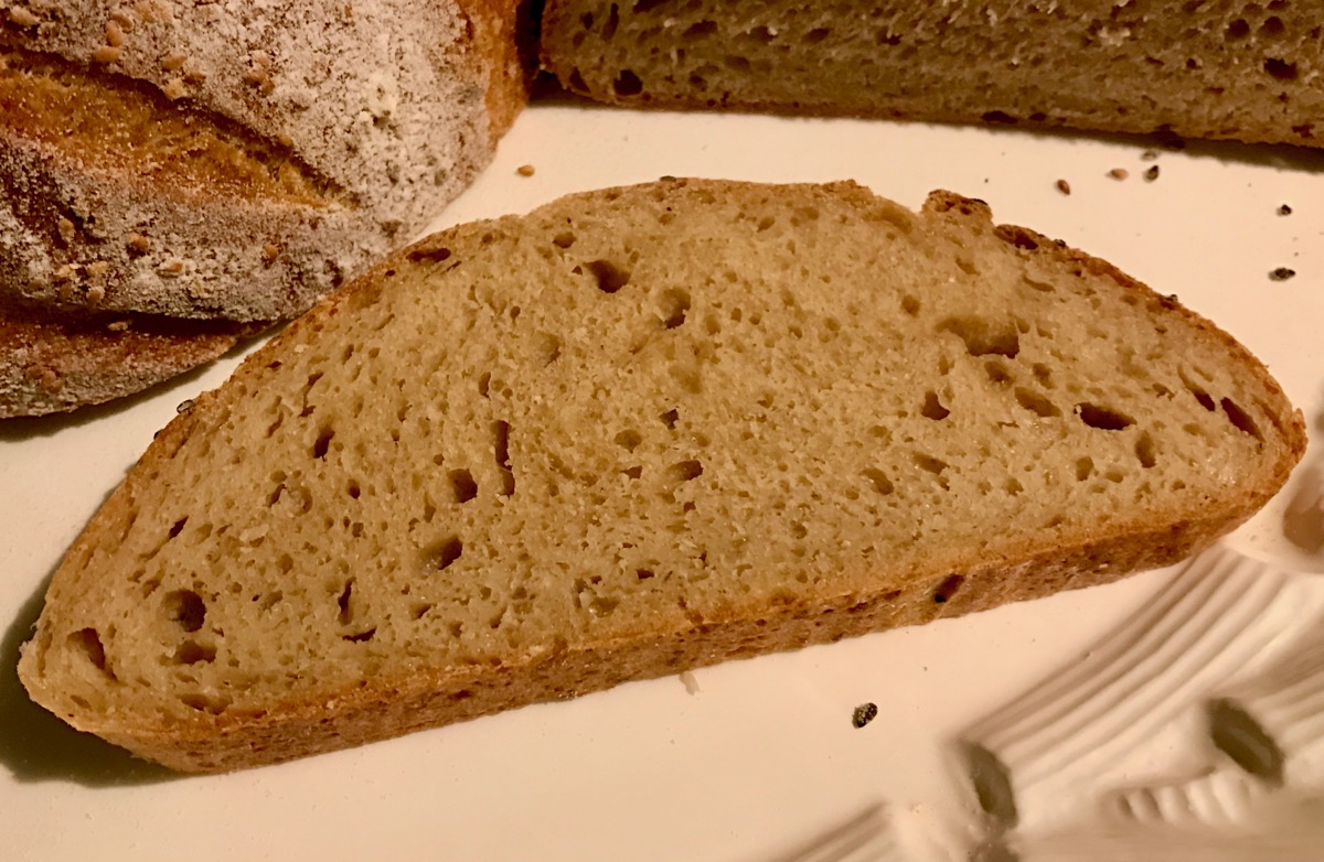 This one turned out very tasty, unless you don’t like smoked sesame seeds or garlic sesame seeds which I added to the top of the loaves. The crumb was soft and moderately open, perfect for grilled bread, sandwiches and just some toast with butter or cheese.