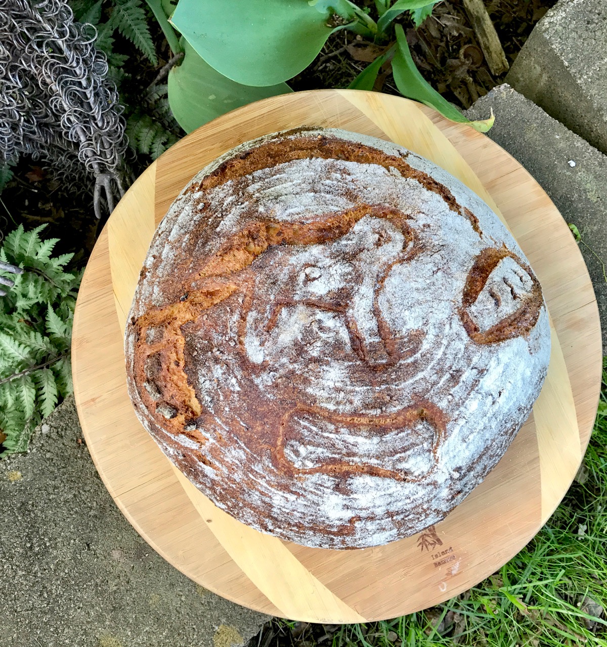 After 5 minute lower the temperature to 450 degrees. Bake for 35-50 minutes until the crust is nice and brown and the internal temperature of the bread is 205 degrees.