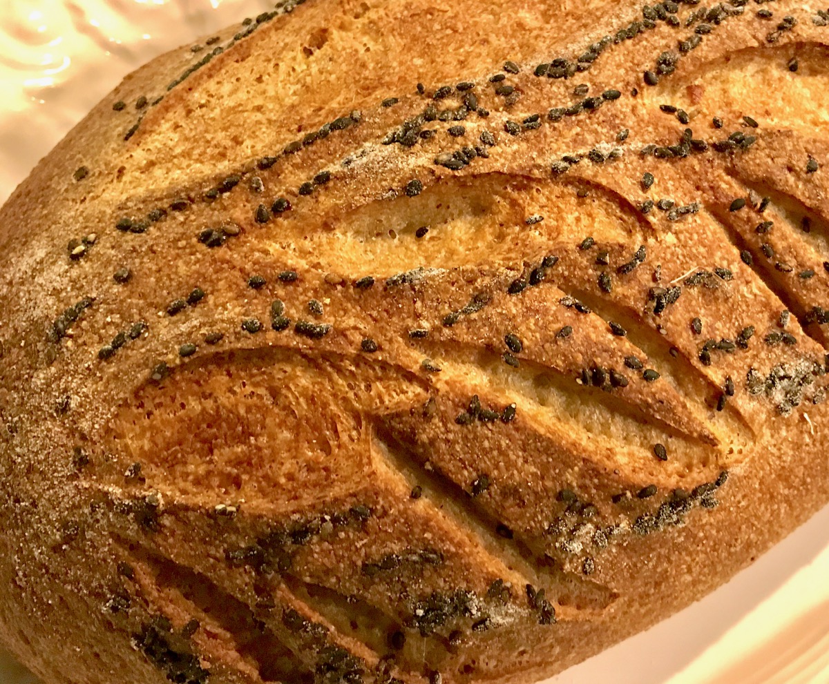 This is a relatively simple bread made with fresh milled Kamut flour, KAF Millet flour and KAF Toasted Almond Flour. I added some smoked pecan maple syrup for extra sweetness which complimented the nutty flavor of the almond flour.