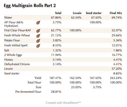 I changed the original formula by swapping out the rye flour with freshly ground spelt, used First Clear instead of Bread Flour and upped the water content. I also switched the olive oil with honey.