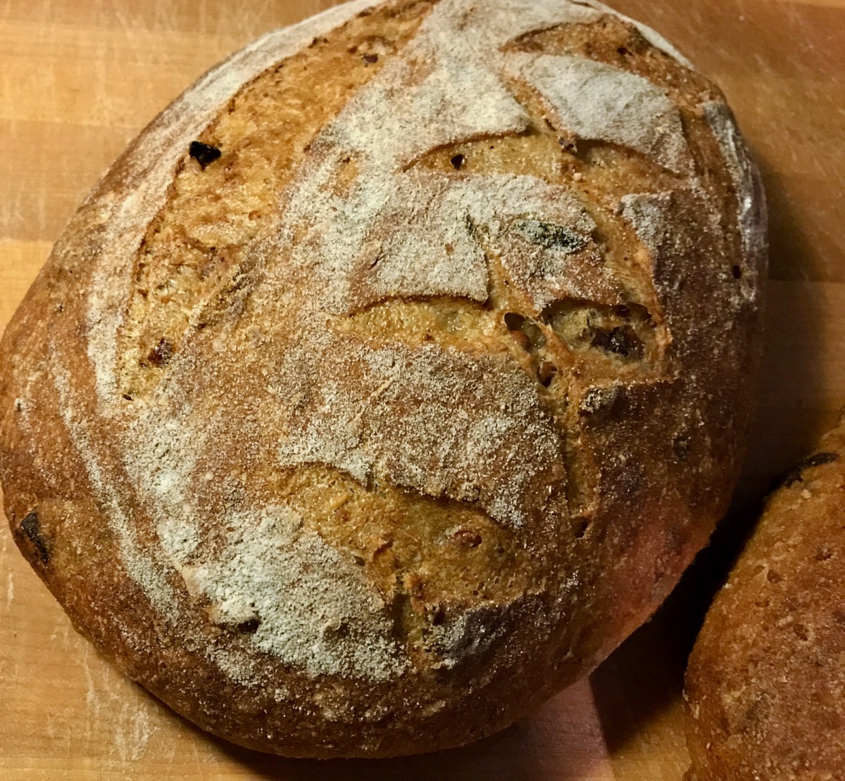 Next, mix the flours  and the water for about 1 minute (reserve the cherries and cranberries for later).  Let the rough dough sit for about 20 minutes to an hour.  Next add the levain, cooled porridge, olive oil and salt and mix on low for 5 minutes.  Now add the pecans and re-hydrated cherries and cranberries and mix on low for another minute until they are incorporated.    Remove the dough from your bowl and place it in a lightly oiled bowl or work surface and do several stretch and folds.  Let it rest covered for 10-15 minutes and then do another stretch and fold.  Let it rest another 10-15 minutes and do one additional stretch and fold.  After a total of 2 hours place your covered bowl in the refrigerator and let it rest for 12 to 24 hours.  (Since I used my proofer I only let the dough sit out for 1.5 hours before refrigerating).
