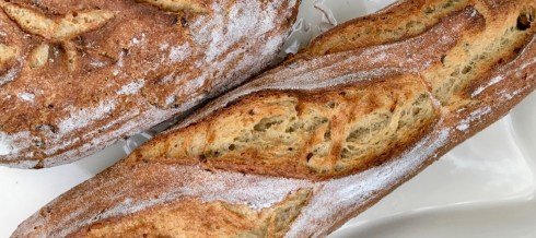 When you are ready to bake remove the bowl from the refrigerator and let it set out at room temperature still covered for 1.5 to 2 hours.  Remove the dough and shape as desired.   Place your dough into your proofing basket(s) and cover with a moist tea towel or plastic wrap sprayed with cooking spray.  The dough will take 1.5 to 2 hours depending on your room temperature.  Let the dough dictate when it is read to bake not the clock.